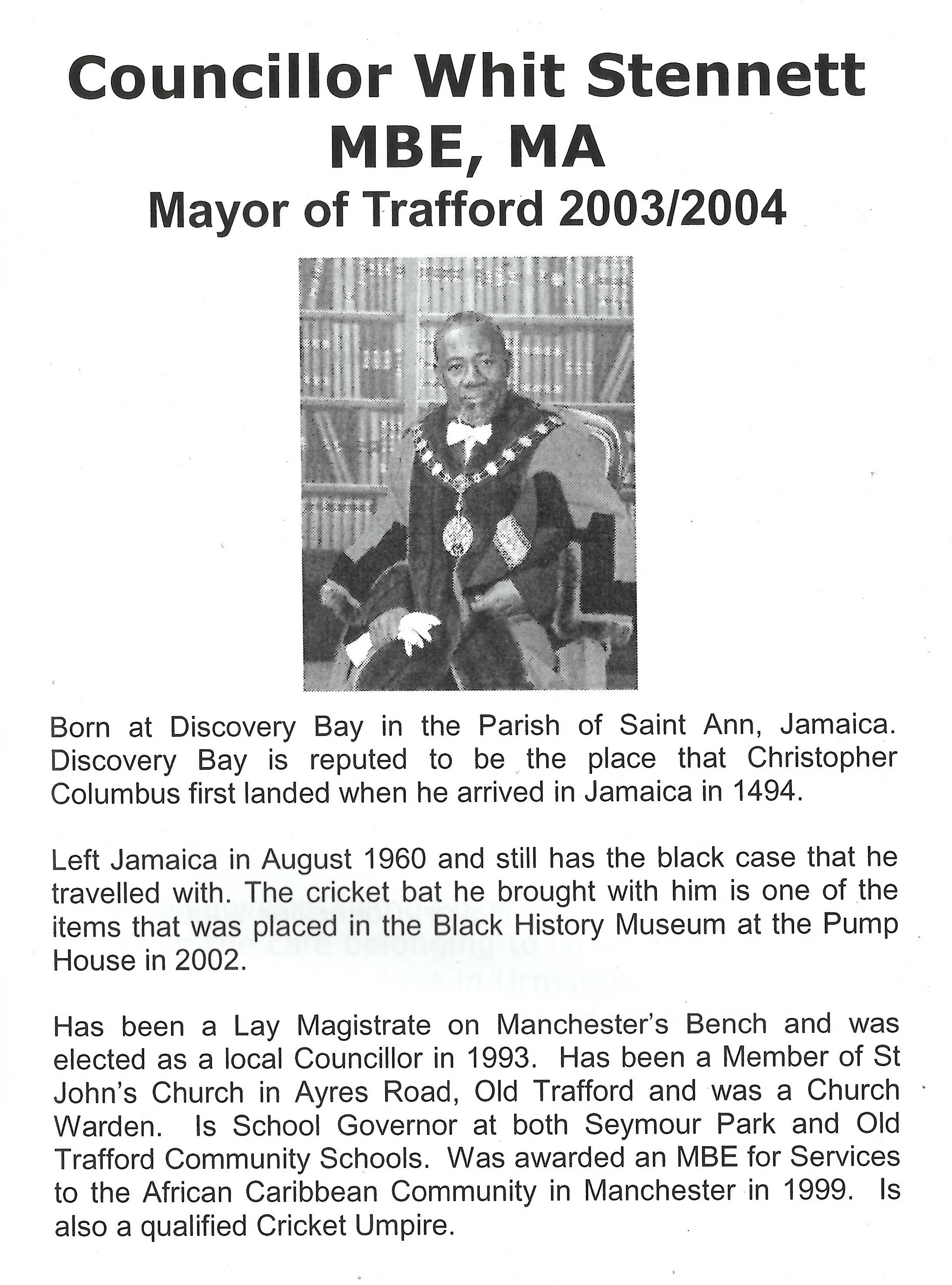 A great opportunity to acknowledge and honour Councillor Whit Stennett for his relentless contributions to sports and community development in Manchester